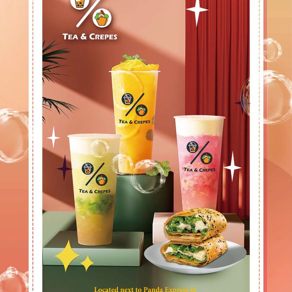 Tea and Crepes serve Milk Tea, Fruit Tea, Shake, Slush, bubble waffle, Chinese Style Savory Crepes and much more delicious snacks!